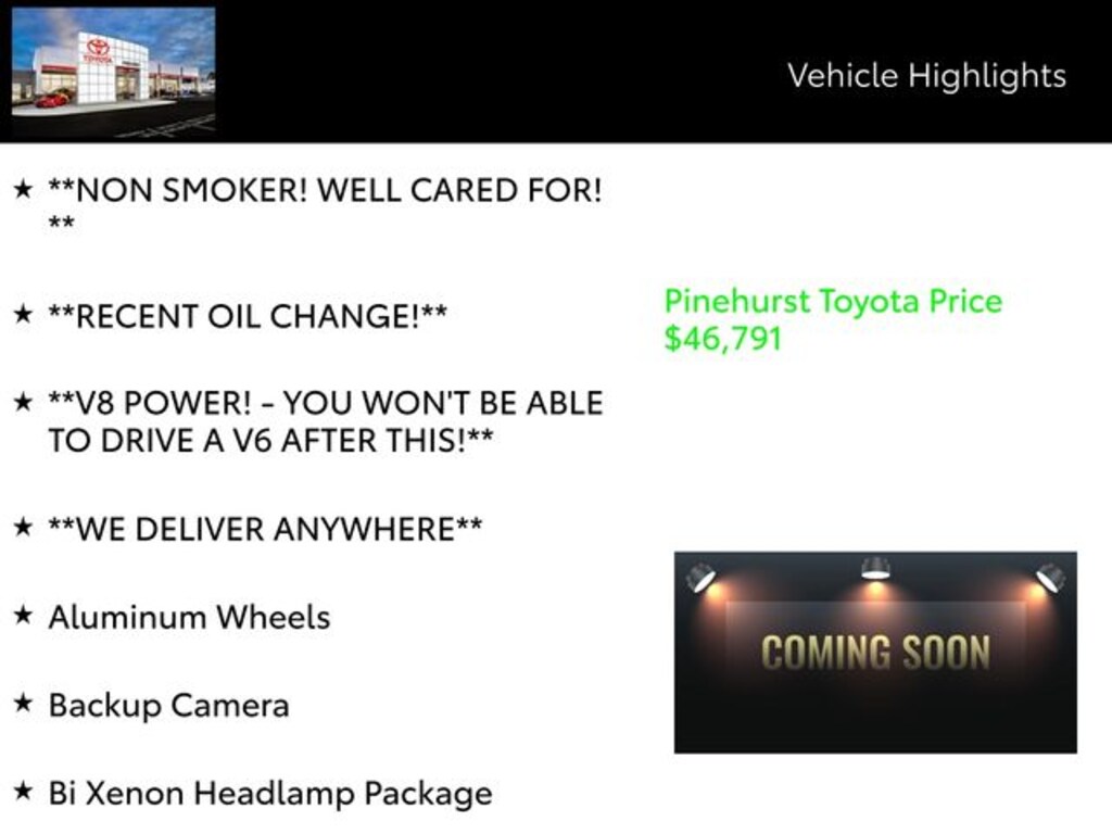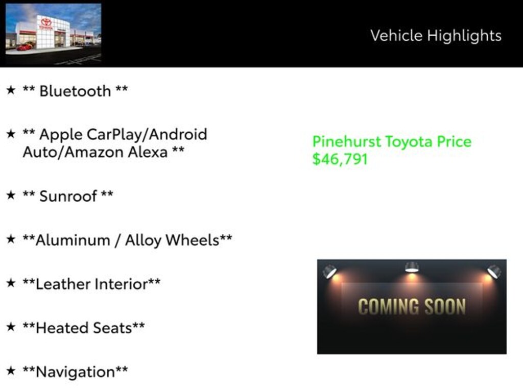 *Though uncommon, it is possible for errors to occur when posting information. We appreciate your understanding and respecting our right to correct errors. All vehicle specifications, prices and equipment are subject to change without notice. See above for information on purchase financing and lease program expiration dates. Prices and payments (including the amount down payment) do not include tax, titles, tags, documentation charges, emissions testing charges, or other fees required by law or lending organizations. The estimated payments may not include upfront finance charges that must be paid to be eligible for the purchase financing program used to estimate the APR and payments. Listed Annual Percentage Rates are provided for the selected purchase financing or lease programs available on the current date. Program expiration dates reflect currently announced program end dates, but these programs are subject to change at any time.