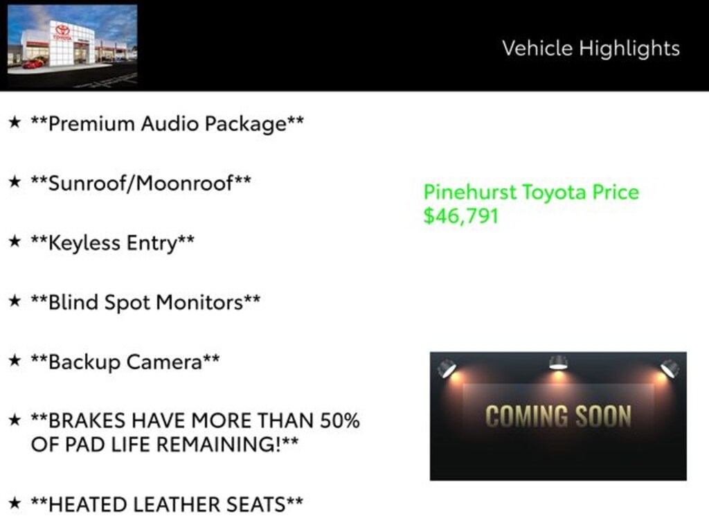 ⢠Blind Spot Monitors