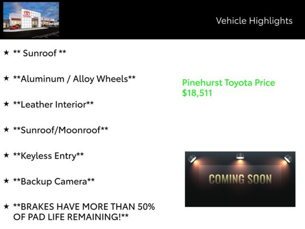 Under the hood, you'll find a powerful 3.5L V6 DOHC Dual VVT-i engine that delivers an exhilarating 21 city / 31 highway MPG, ensuring an exceptional balance of power and efficiency. The 6-Speed Automatic Transmission with Sequential Shift ECT-i provides a smooth and responsive driving experience, while the Front-Wheel Drive system offers confident handling in all conditions.